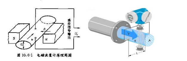 硫酸流量計的工作原理是基于法拉第電磁感應定律。在電磁流量計中,測量管內(nèi)的導電介質(zhì)相當于法拉第試驗中的導電金屬桿,上下兩端的兩個電磁線圈產(chǎn)生恒定磁場。當有導電介質(zhì)流過時,則會產(chǎn)生感應電壓。管道內(nèi)部的兩個電極測量產(chǎn)生的感應電壓。測量管道通過不導電的內(nèi)襯(橡膠,特氟隆等)實現(xiàn)與流體和測量電極的電磁隔離,如圖所示。