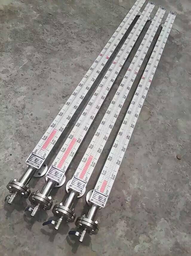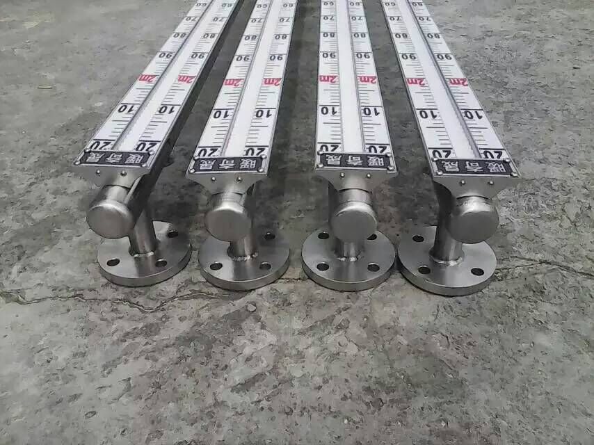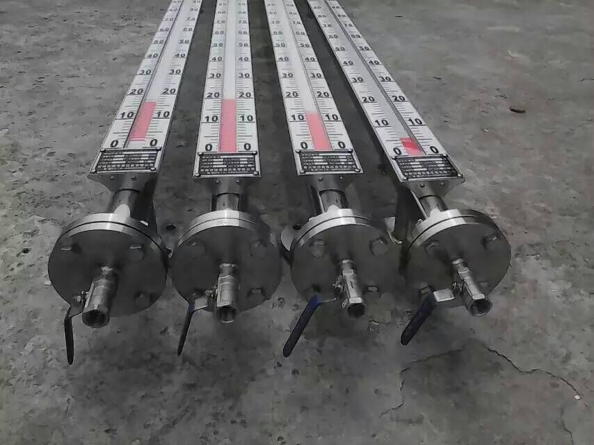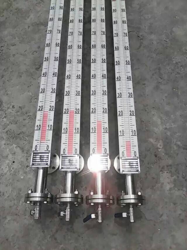 液位計(jì)根據(jù)浮力原理和磁性耦合作用原理工作的。當(dāng)被測容器中的液位升降時(shí),液位計(jì)主導(dǎo)管中的浮子也隨之升降,浮子內(nèi)的永久磁鋼通過磁耦合傳遞到現(xiàn)場指示器,驅(qū)動(dòng)紅、白翻柱翻轉(zhuǎn)180°,當(dāng)液位上升時(shí),翻柱由白色轉(zhuǎn)為紅色,當(dāng)液位下降時(shí),翻柱由紅色轉(zhuǎn)為白色,指示器的紅、白界位處為容器內(nèi)介質(zhì)液位的實(shí)際高度,從而實(shí)現(xiàn)液位的指示。